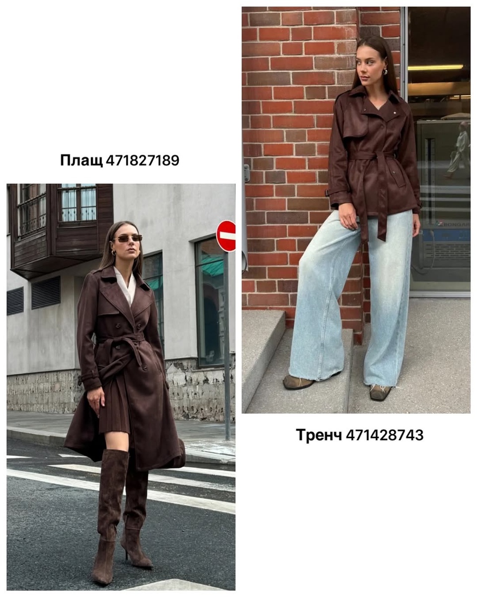 - Тренч 471428743 (распахнут) + белый топ + светлый wide-denim + кеды/лоферы.