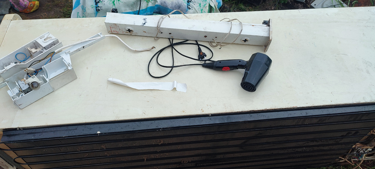 Всем привет, сегодня очередной обзор находок. С наступлением осени значительно сократилось количество выбрасываемой бытовой техники, а так же с повышением конкуренции на данном сегменте заработка для тех кто по тем или иным причинам охотится за предметами из которых можно получить металлолом или радиодетали для их дальнейшей продажи. Итак начнём с современного фена С него выход по железу минимальный, но наличие провода питания селит оптимизм немного заработать. И продолжим старым советским люминесцентным светильником Наличие в нём дросселя придаёт ему весомость как находки. А порадовала меня находка холодильника начала двухтысячных Привожу вид задней стенки, так как наибольший интерес представляет она, ибо её вид даёт понимание того что нам достанется наиболее ценного при разборе данного холодильника, а это решётка радиатора, в советских холодильниках она была медная, и компрессор, а их здесь аж целых два Также радует что данный холодильник выкинут со всеми проводами и медными трубкам