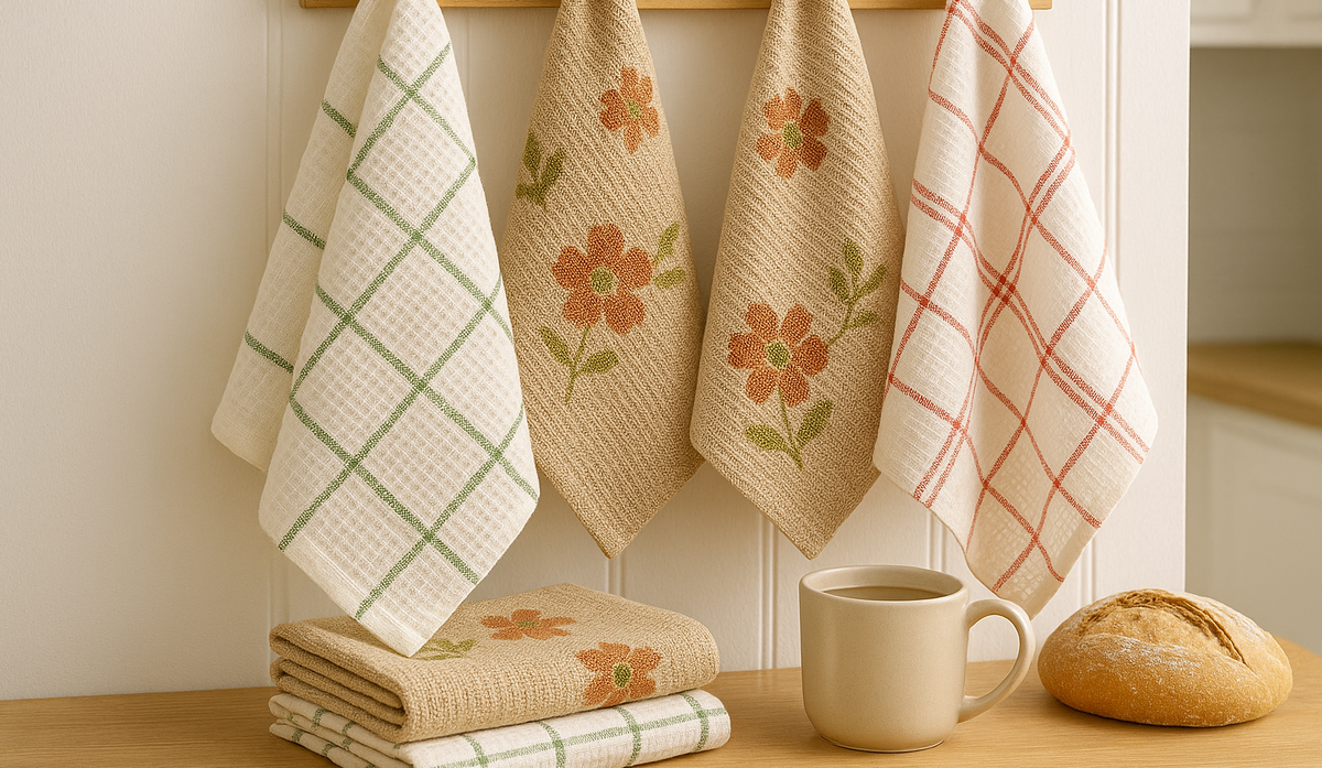 Расскажу о двух простых, но очень практичных тканях, которые идеально подходят для кухни — вафельной и рогожке. Когда речь заходит о кухонных полотенцах, у каждой хозяйки есть свои предпочтения. Кто-то любит тонкие и быстро сохнущие, кто-то – более плотные, чтобы хорошо впитывали. Но одно точно: от ткани зависит и удобство, и долговечность полотенца. Сегодня расскажу о двух классических вариантах – вафельной ткани и рогожке. Само название "вафельное полотно или ткань" говорит за себя: рисунок у этой ткани напоминает вафли – мелкий или крупный клетчатый рельеф. Почему её любят для полотенец: Из минусов – вафельная ткань может сначала показаться жестковатой, но после пары стирок она становится мягче и приятнее. Рогожка отличается более плотным переплетением, чем вафельная ткань. Выглядит она «зернистой», с лёгкой фактурой и отлично подходит для кухонного текстиля. Тут главное не запутаться: рогожка – это не конкретный материал, а способ плетения нитей. То есть одна рогожка может быть