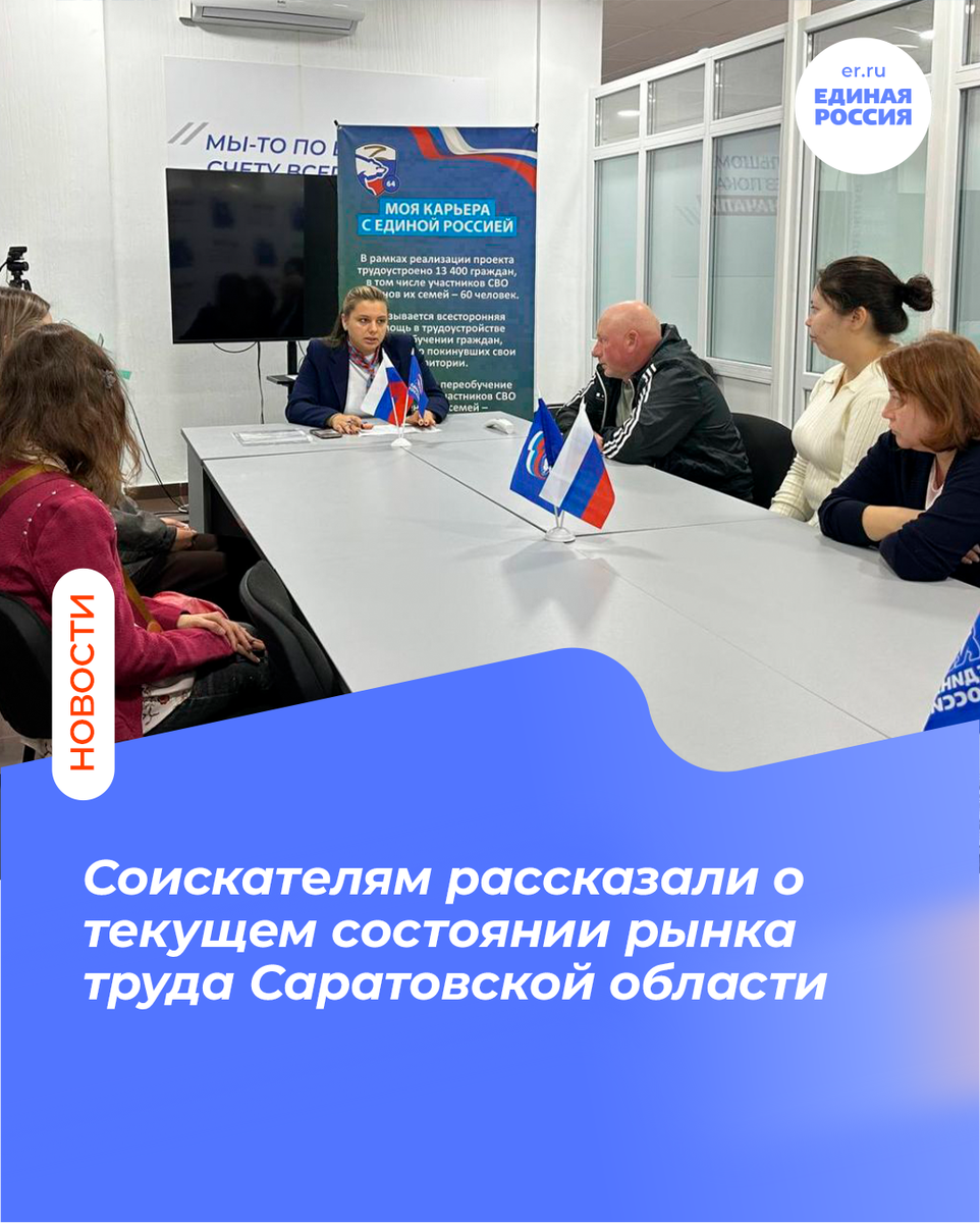 Центр осуществляет свою работу в рамках реализации федерального партийного проекта «Моя карьера с Единой Россией». В процессе проведения приема консультант центра предоставила участникам мероприятия развернутую информацию по вопросам содействия занятости. Присутствующим была доведена информация о текущем состоянии рынка труда Саратовской области, а также проведены детальные разъяснения практического применения сервисов портала «Работа России», таких как: самостоятельное составление и размещение резюме, прохождение процедур профессиональной ориентации и получения индивидуальных рекомендаций по выбору направления трудовой деятельности.