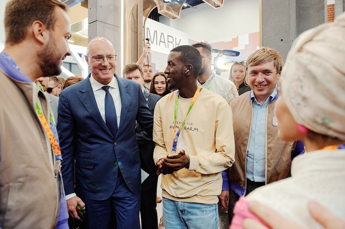 Чернышенко осмотрел площадку Слета, поприветствовал зарубежных блогеров — участников образовательной программы Дирекции Всемирного фестиваля молодёжи и Мастерской новых медиа, а также посетил иммерсивное шоу "Симфония времени: чувствуй, живи, твори", которое знакомит иностранных гостей с самобытной русской культурой и историей.