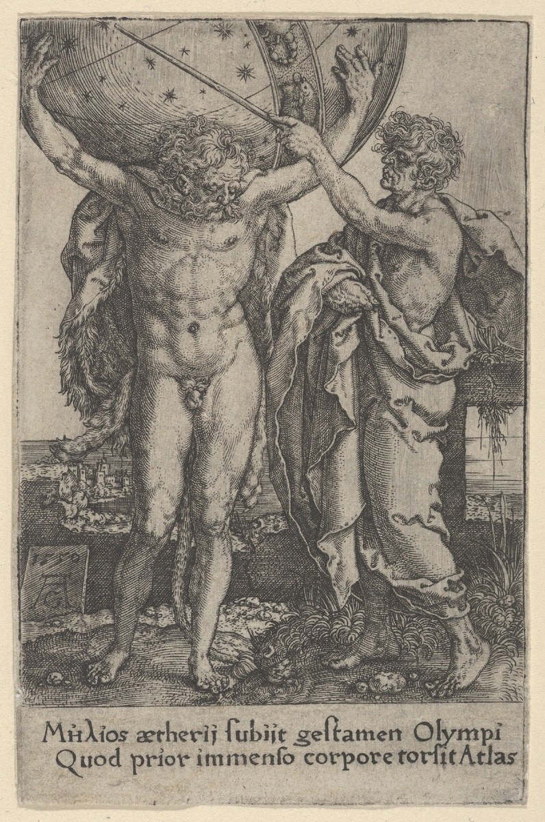 ⚱️ Сила против судьбы: Геркулес и Атлант в уникальном гравюре