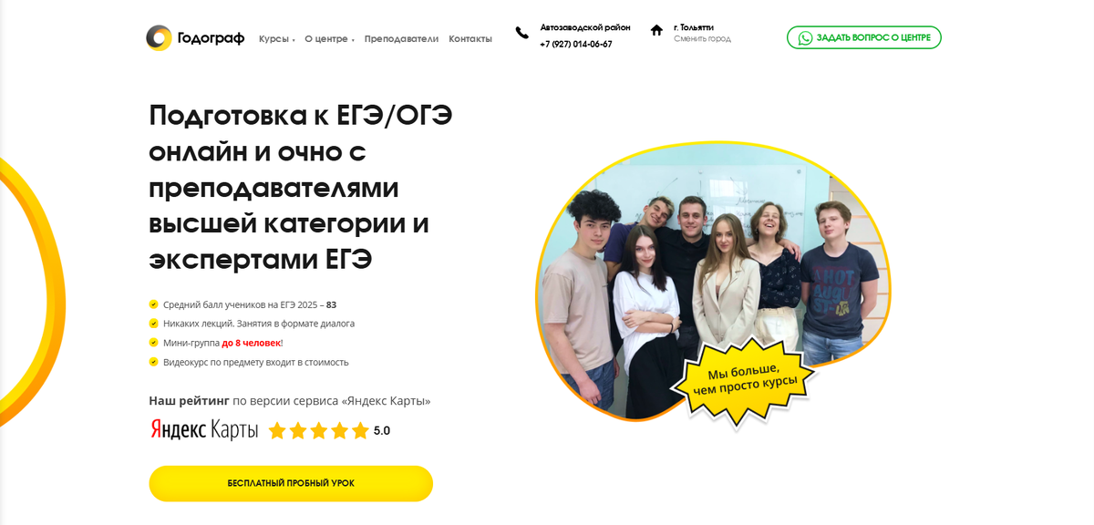 Формат: офлайн + онлайн Описание: федеральная сеть учебных центров, представлена и в Тольятти. Курсы рассчитаны на старшеклассников, включают теорию, практику и регулярные пробные тесты.