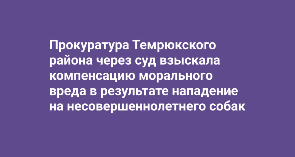 Прокуратурой района в интересах несовершеннолетнего в суд направлено исковое заявление о взыскании с органа местного самоуправления компенсации морального вреда, в связи с причинением вреда здоровью несовершеннолетнему в результате укусов.