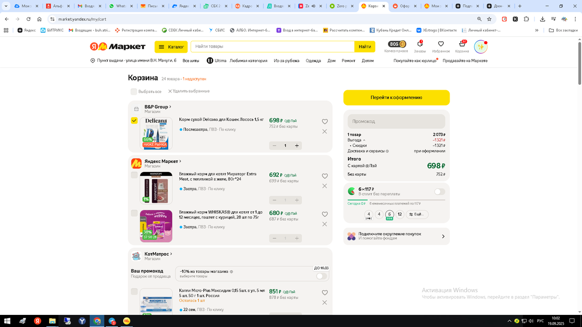 У нас проблема К сожалению ЯндексМаркет заблокировал нам заказ сухого корма для котят/кошек! Наша переписка Я - Вот уже неделю не могу заказать ни один сухой корм для котят - у нас приют, и мы берем много!!! Почему??? Приходиться заказывать на Озоне и ВБ, очень не удобно... Яндекс - Если вы уже купили корм, возможно, все доступные позиции уже проданы. В таком случае оформите новый заказ через некоторое время или обратите внимание на аналогичные товары у других продавцов. Если товара нет, проверьте его наличие завтра - запасы обновляются ежедневно Я- это отписка, я пытаюсь сделать заказ каждый день в течении недели у самых разных продавцов - везде один и тот же результат!!! Яндекс - Нужный товар может закончиться после покупки. Если вы уже приобрели корм, а сейчас его нет в наличии - попробуйте оформить заказ позже или посмотрите похожие предложения других продавцов Количество товаров, которые доступны для покупки, зависит от их наличия на Маркете. Рекомендуем вам оформить покупку позд