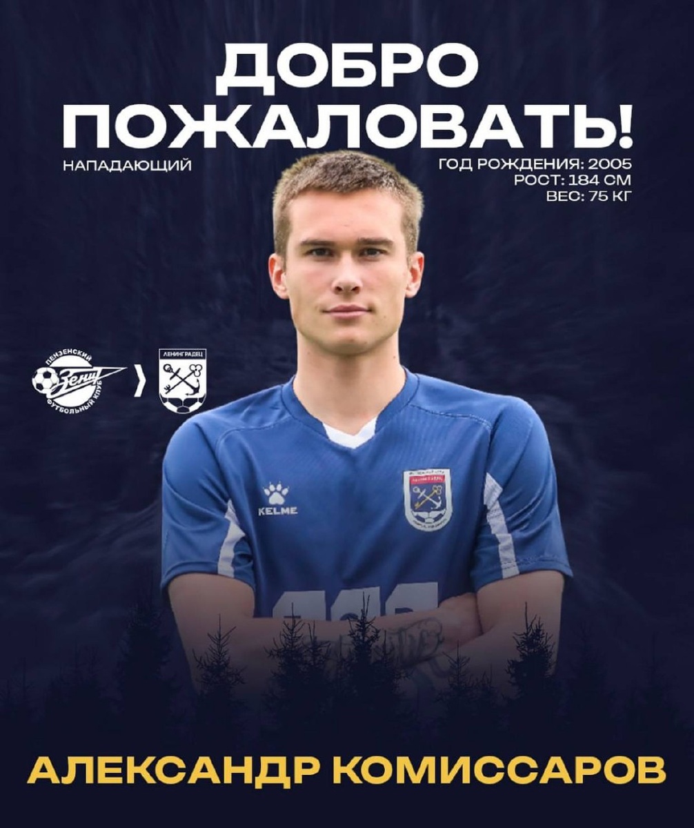 🚨 Нападающий Александр Комиссаров пополнил состав футбольного клуба «Ленинградец