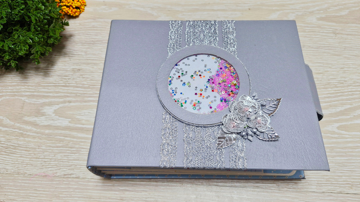 Размер альбома 21 см на 26 см и фотографий там можно разметить около 50 штук.