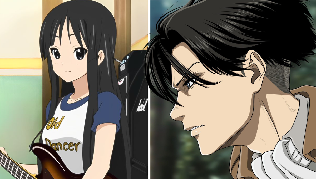 Популярные герои аниме с черными волосами: Микаса Акерман, Мио Акияма и Леви Акерман.