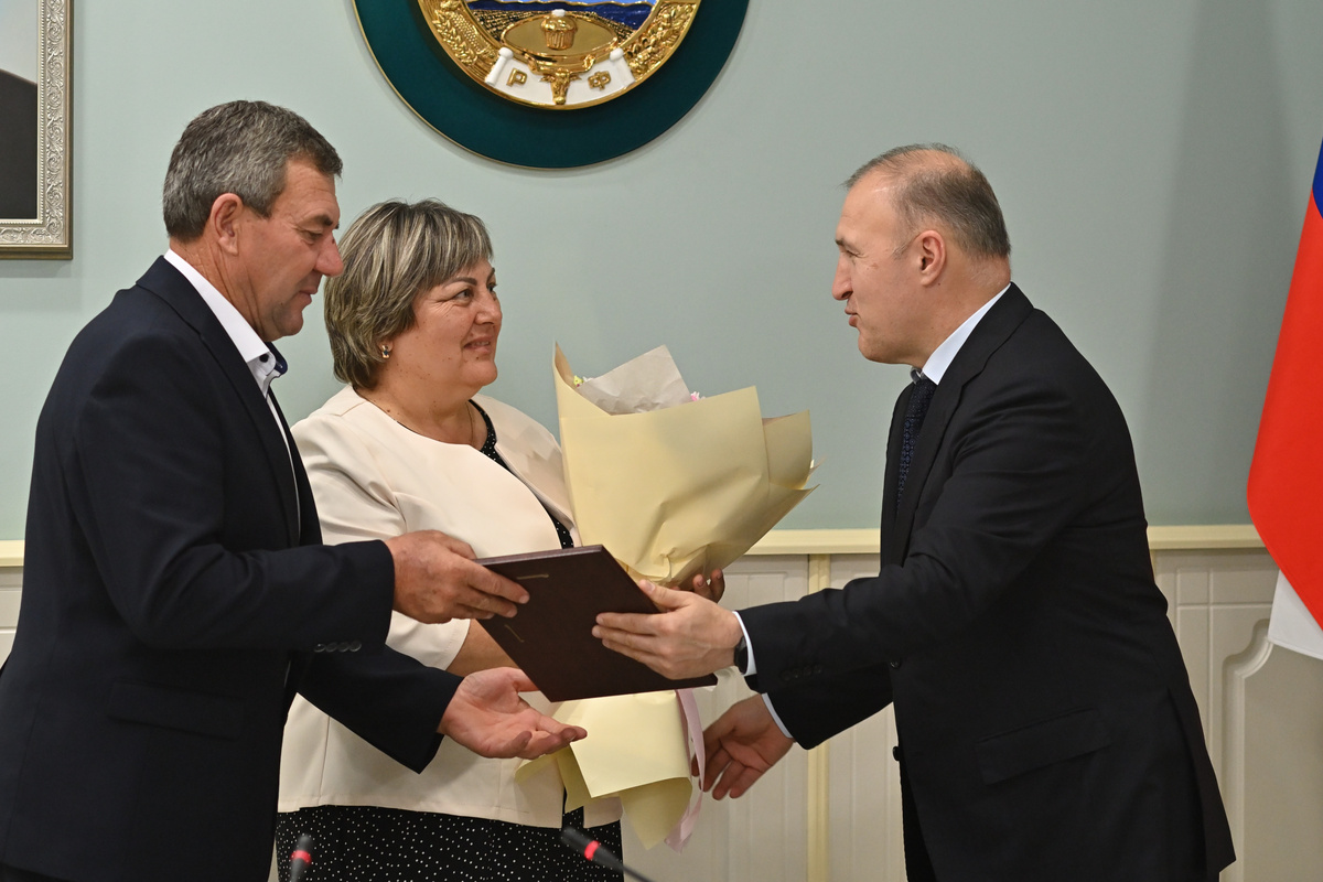 В Доме правительства республики состоялось чествование победителей регионального и федерального этапов Всероссийского конкурса «Семья года». Глава Адыгеи Мурат Кумпилов приветствовал участников встречи. Отдельные поздравления руководителя региона прозвучали в адрес семьи Василия и Светланы Волошиных из села Сергиевское Гиагинского района, ставших победителями Всероссийского этапа конкурса в номинации «Многодетная семья». В этом году Всероссийский конкурс «Семья года» проводится в десятый раз. Среди организаторов проекта – Министерство труда и соцзащиты России и Фонд поддержки детей, находящихся в трудной жизненной ситуации. Адыгею на конкурсе представили 50 семей в 6 номинациях. Победителями регионального этапа стали семьи Николая и Ирины Марковых («Золотая семья», Майкоп), Зураба и Фатимы Зеховых («Сельская семья», Кошехабльский район), Василия и Светланы Волошиных («Многодетная семья», Гиагинский район), Игоря и Анастасии Блащинских («Молодая семья», Теучежский район), Бислана и Сим