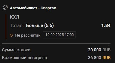 ➕➕➕🏒🏒🏒🏒🏒 🚘Автомобилист - 🐷Спартак Москва В крайних матчах Спартака я увидел то, что команда возвращается в привычный стиль игры, а именно - не важно сколько ты пропустишь, главное забросить на одну больше. Автомобилист прошлый матч провалил, проиграв Трактору в сухую, но это скорее случайность. У обоих команд атакующий потенциал просто сумасшедший, верю в результативную игру. Прогноз: Тотал больше 5,5