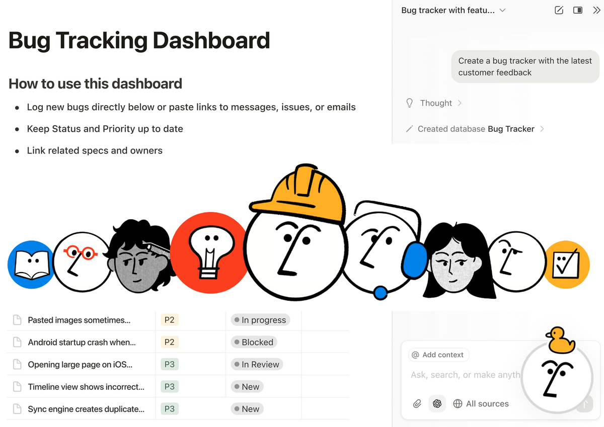 Начала смотреть трансляцию конференции Make with Notion. На ней было объявлено, что приложение обновилось до версии 3.0. Внедрены две принципиальные функции. Как утверждают разработчики, ИИ-агентам в Notion доступно всё, что доступно вам. Здесь уже можно начинать бояться. Они могут пройтись по почте, заметкам и создать отчёт в заданном формате. Могут добавить в базу задачи, назначить ответственных и прописать даты. В общем, персональный агент – это типа киллер-мега-фича, которая сэкономит вам кучу времени и позволит вашему мозгу зарасти жиром гораздо быстрее, чем вы ожидали. Отныне Notion работает за вас. А вы сидите в сторонке, наблюдаете, как баблосик сам собой падает на счёт, и потягиваете матчу. Ну или что вы там обычно потягиваете. Из интересного: для ИИ-агента можно создать инструкции в виде обычной страницы Notion. Преференции прописываются простым текстом. Что-то в стиле «для отчетов X используй шаблон Y», «я люблю, когда заголовки зелёненькие», «обращайся ко мне «О, моя несрав