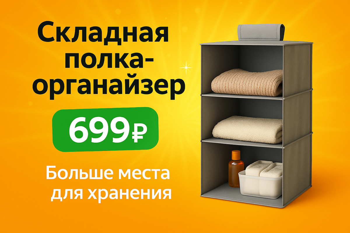 🔥 Полка-органайзер помогает легко навести порядок в шкафу или гардеробной. Складывается за секунды и экономит пространство. ✅ Вместительная, выдерживает до 10 кг ✅ Складывается и убирается, когда не нужна ✅ Подходит для одежды, полотенец и мелочей ✅ Лёгкий и прочный материал 💰 Цена — 699 ₽ 📦 Доставка по России 1–3 дня 👉 В «ЛовиХит» каждый день свежие находки, которые экономят деньги и время 👇 https://t.me/lovihit
