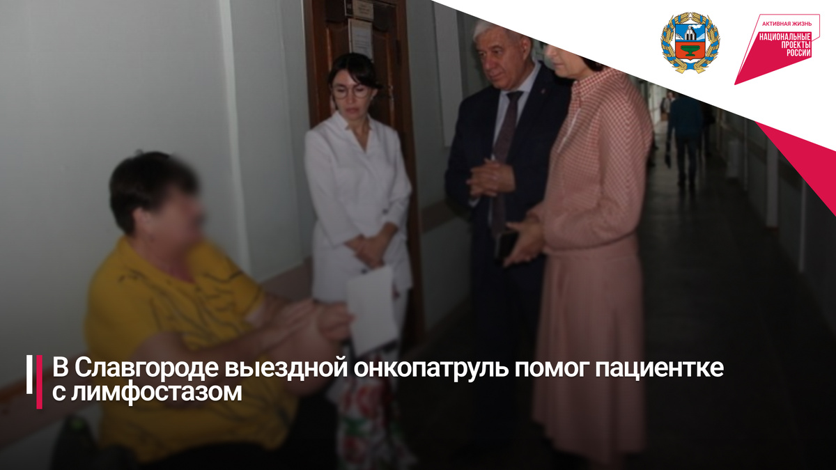 В рамках национального проекта «Продолжительная и активная жизнь» в Славгороде работал выездной онкопатруль краевого онкодиспансера. Во время приёма внимание главного врача Игоря Вихлянова привлекла местная жительница Маргарита Захаренко с тяжёлым отёком руки — лимфостазом, развившимся через два года после операции по удалению молочной железы.