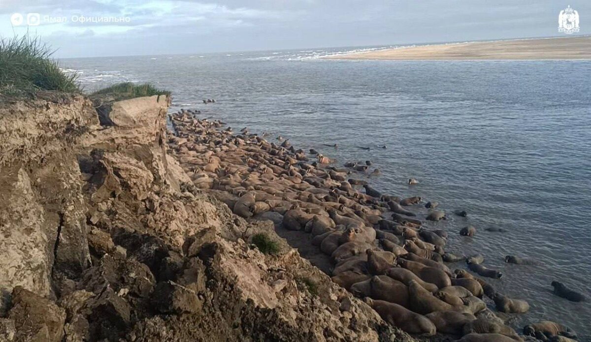 Ластоногие курортники вновь облюбовали ямальские берега 🏖 На мысе Тиутей-Сале замечены моржи. Первым фото лежбища с нами поделился Родион Вануйто, кочующий в Ямальской тундре. ℹ️ В Ямальском районе расположено единственное в мире материковое лежбище атлантических моржей. Учёные Арктического научно-исследовательского стационара Института экологии растений и животных совместно со специалистами центра «Морские млекопитающие» ежегодно организуют экспедиции в район мыса для отслеживания динамики наполнения лежбища, возрастного состава и поведения животных. Чтобы защитить уникальное место создан специальный заказник «Тиутей-Яхинский». 🐻❄️ ЯМАЛ. Официально | Подписаться