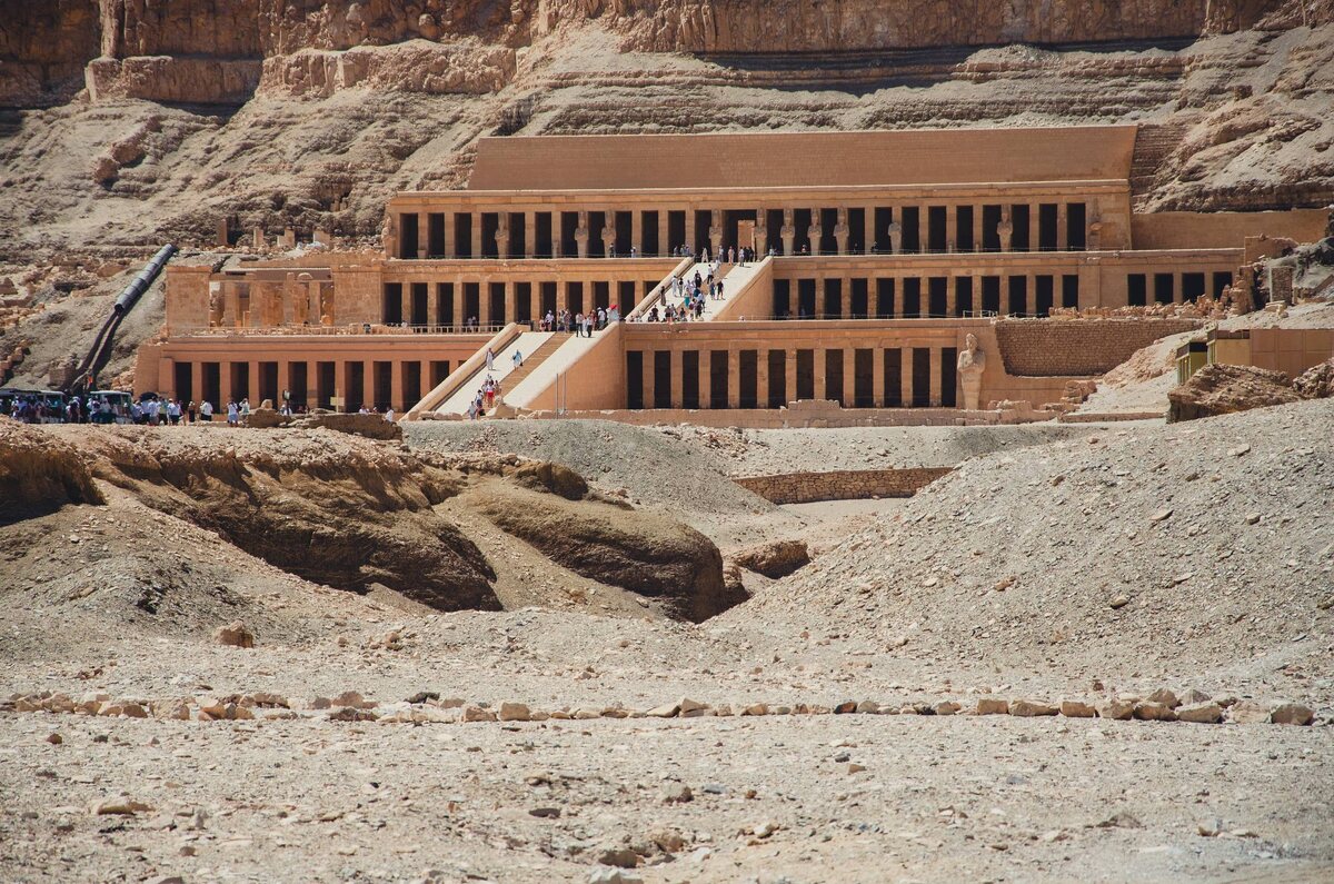 Храм Царицы Хатшепсут в Дейр-эль-Бахри Эта одна из тех достопримечательностей в окрестностях Луксора, от посещения которой я ничего не приобрел. Как бы и не потерял ничего, если бы не посетил. Ну да ладно. Хатшепсут единственная женщина-фараон, которая была удостоена титула «царя». Правда, для этого ей пришлось объявить себя «сыном» бога Амона. Одно дело объявить, а совсем другое удерживать власть почти 10 лет. Во время своего правления Хатшепсут на правом берегу Луксора в городе мёртвых строит уникальный для того времени храм из трёх террас. 📌Храм в Дейр-эль-Бахри задумывался не только как место жертвоприношений Амону-Ра, но и как мемориал-комплекс, демонстрирующий могущество Хатшепсут и поддержку жречества. Тутмос III, который унаследовал трон после Хатшепсут, хотел уничтожить упоминание о ней, и даже разрушил храм. Так он и стоил много тысячелетий занесенный песком, пока археологи не нашли описание храма и не начали масштабную реставрацию. Вход в храм стоит всё также 400 еги