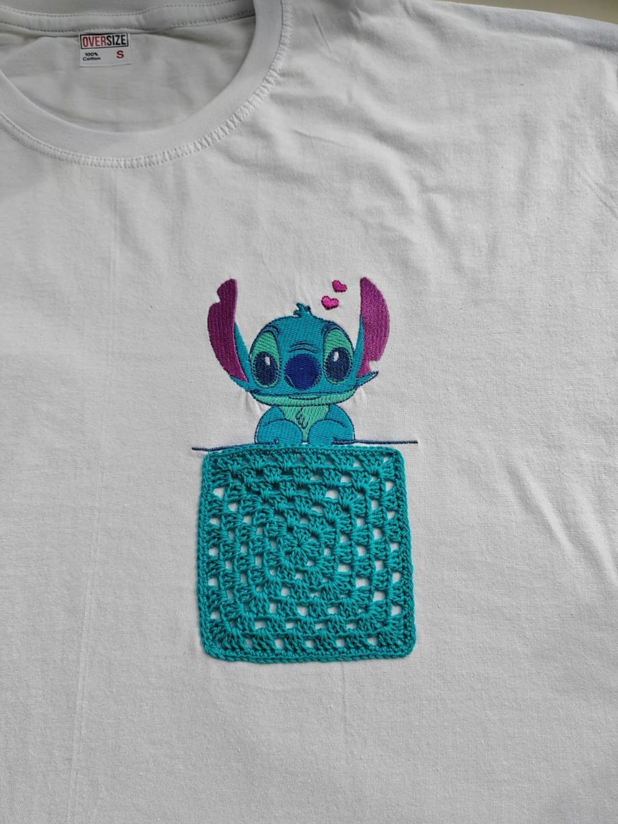 🎨 Сегодня мы создали невероятно уютную и веселую футболку с мультгероем — Стичем из культового мультфильма «Лило и Стич»! ✅ Вышивка выполнена из ярких ниток, идеально передавая харизму персонажа. ✅ Яркий карман выполнен крючком из мягкой натуральной хлопковой пряжи и гармонично дополняет дизайн изделия. ✅ Футболка свободного кроя удобна и подходит для повседневного стиля. 💁🏻♀️ Доступна для приобретения прямо сейчас. А если хочется добавить яркости — можем повторить изделие с кармашком ярко-розового оттенка! 🩷