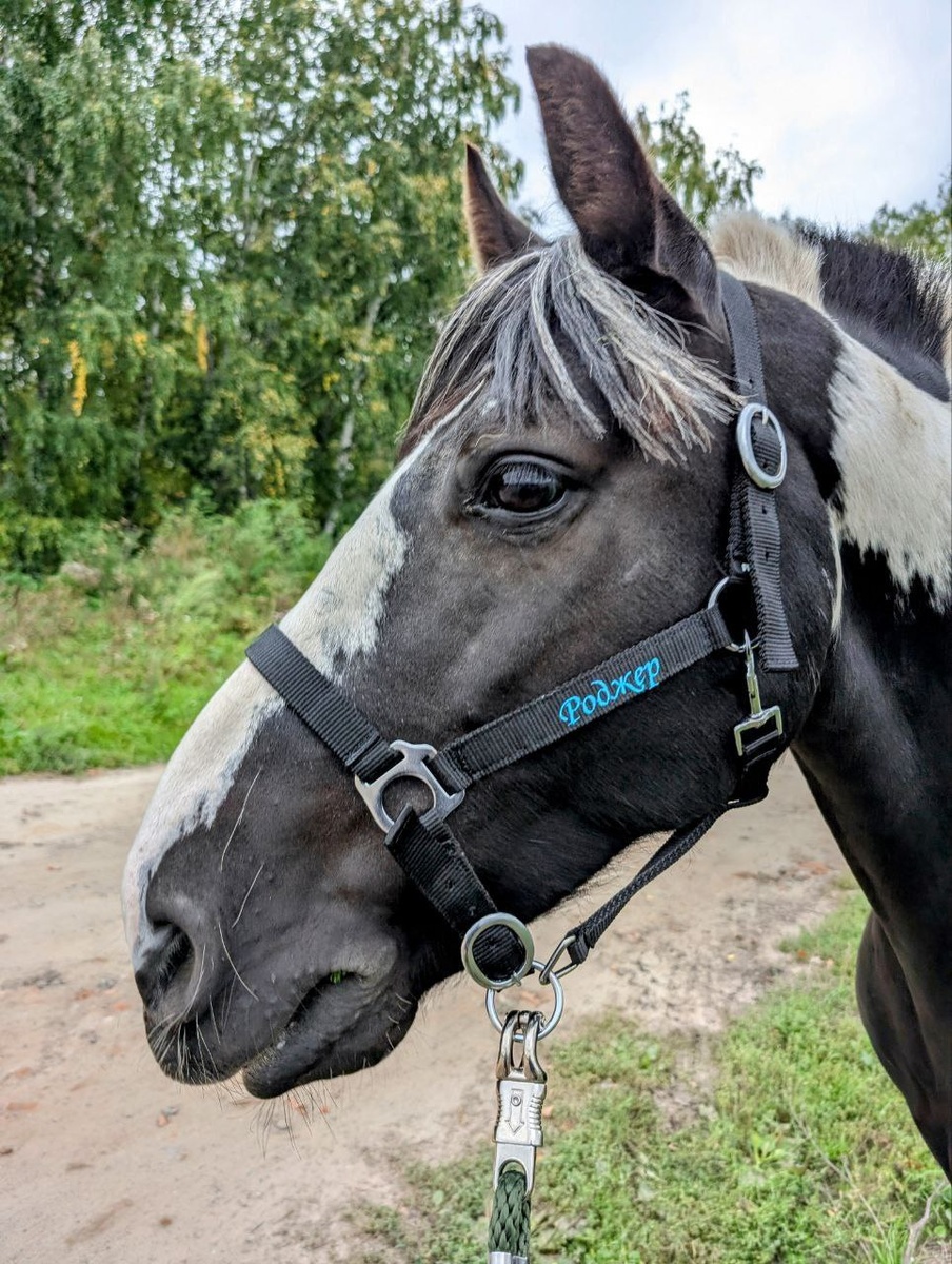 В конце августа, в день лошади (31 августа Фролов день) мы делали вышивку клички коня на недоуздке) Это был наш первый опыт работы с подобными изделиями и мы рады, что все получилось прекрасно! Кажется, Роджер тоже доволен был такому подарку 🩵