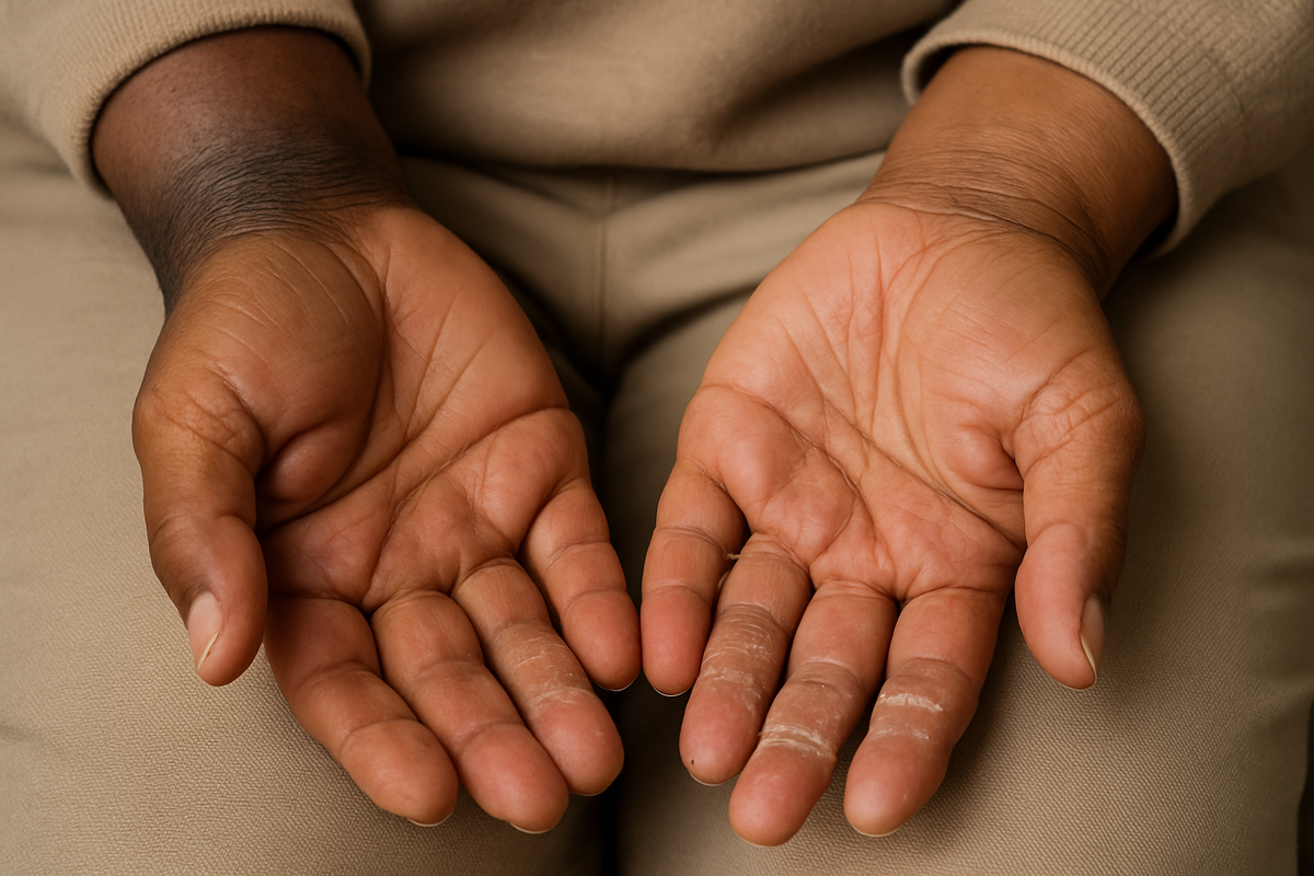 У меня всё было иначе. Я пришёл к урологу с интимной проблемой — оказалось, это фимоз. Врач посмотрел и сказал: «Вам нужно срочно к эндокринологу». Через пару дней я оказался в центре диабета и эндокринных заболеваний. И тогда всё началось: анализы, диагноз, новая жизнь. Этот опыт стал для меня уроком: диабет может проявляться очень необычно. С тех пор я стал обращать внимание на симптомы, которые раньше считал «несущественными». Диабет — это не только «сахар в крови». Он влияет на: Поэтому у многих людей появляются симптомы, которые на первый взгляд никак не связаны с диабетом. Пальцы становятся плотными, кожа грубеет, движения ограничены. Иногда кисть буквально сводит, и она выглядит так, будто человек держит руку для молитвы.