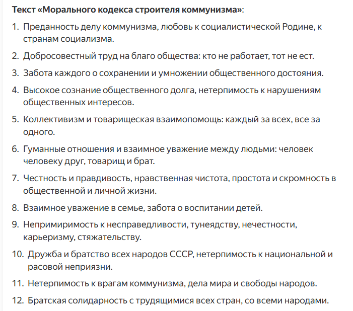 И я задумалась. А действительно. Поднимаем Кодекс строителя коммунизма и читаем (извините, картинкой, иначе Дзен обидится, что много цитат):