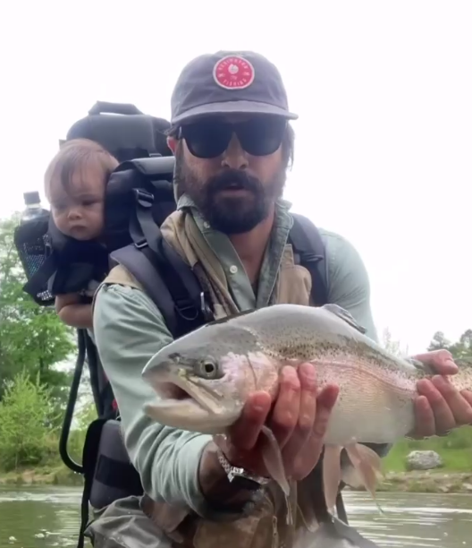 «Сначала в переноске, потом с удочкой.