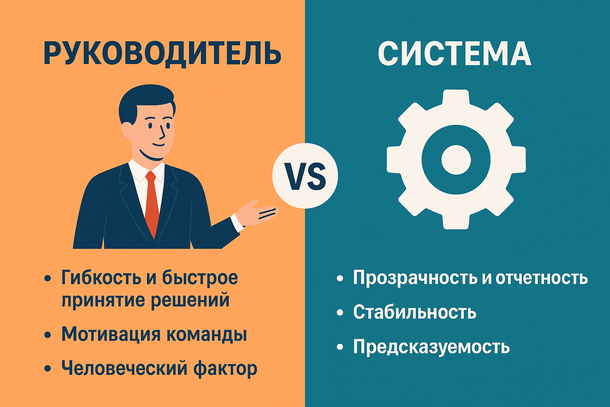 Управление проектами всегда балансирует между двумя полюсами: с одной стороны — руководитель, с другой — система. Кто должен быть главным? Этот вопрос не такой простой, как кажется на первый взгляд. С одной стороны, у проекта есть конкретные сроки, бюджет, задачи и команда. С другой — человеческий фактор, без которого не двигается ни одна строчка плана. И часто именно здесь возникает противоречие: система требует одно, руководитель чувствует другое. Есть мнение: «Проект держится на личности». И это действительно часто так. Харизматичный лидер может вдохновить команду даже тогда, когда система буксует. Он умеет гибко реагировать на изменения, подстраиваться под новые условия и быстро принимать решения там, где регламент будет слишком медленным. Например, в одном из проектов мы столкнулись с неожиданной проблемой: ключевой сотрудник внезапно ушёл в отпуск по состоянию здоровья. Система не предполагала такой замены — на бумаге «запасных» не было. Но руководитель сумел быстро перераспредел