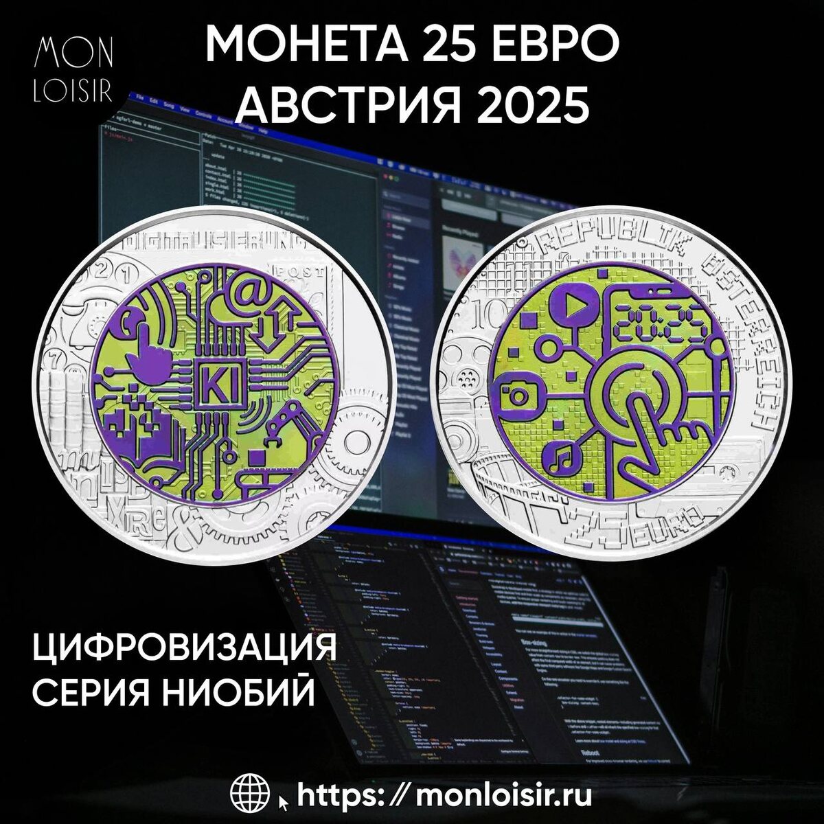🔥 НОВИНКА 2025! Австрия представляет: серебро + ниобий – монета Цифровизация из уникальной серии