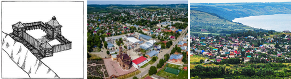 Так мог выглядеть сторожевой пост на берегу реки в шестнадцатом веке. Панорамы города Хвалынска в наше время.
