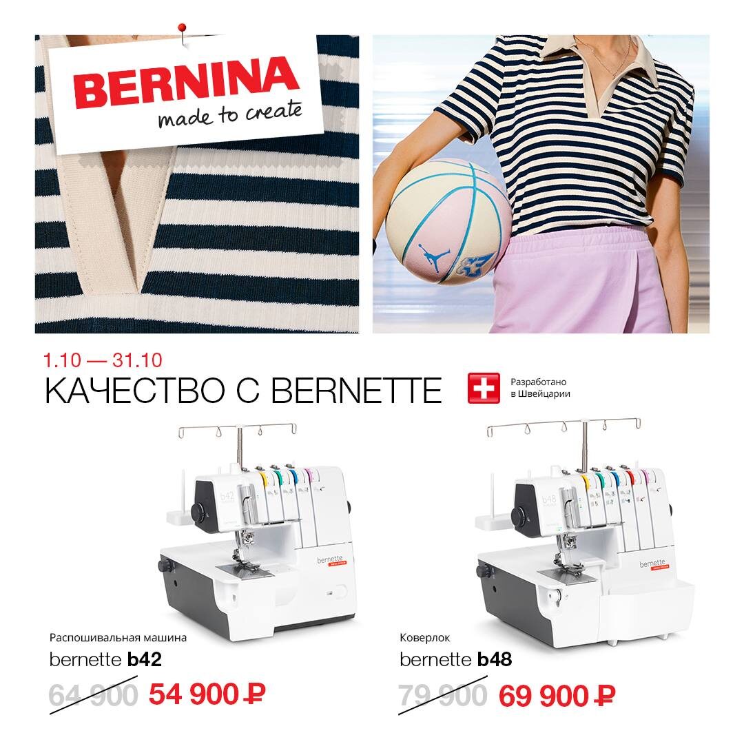 Октябрь – время обновить швейную технику! До конца месяца действуют особые цены на товары Bernina, Bernette и гладильную технику от Lelit. Успейте приобрести по выгодным ценам: https://world-sewing-machines.ru/s/