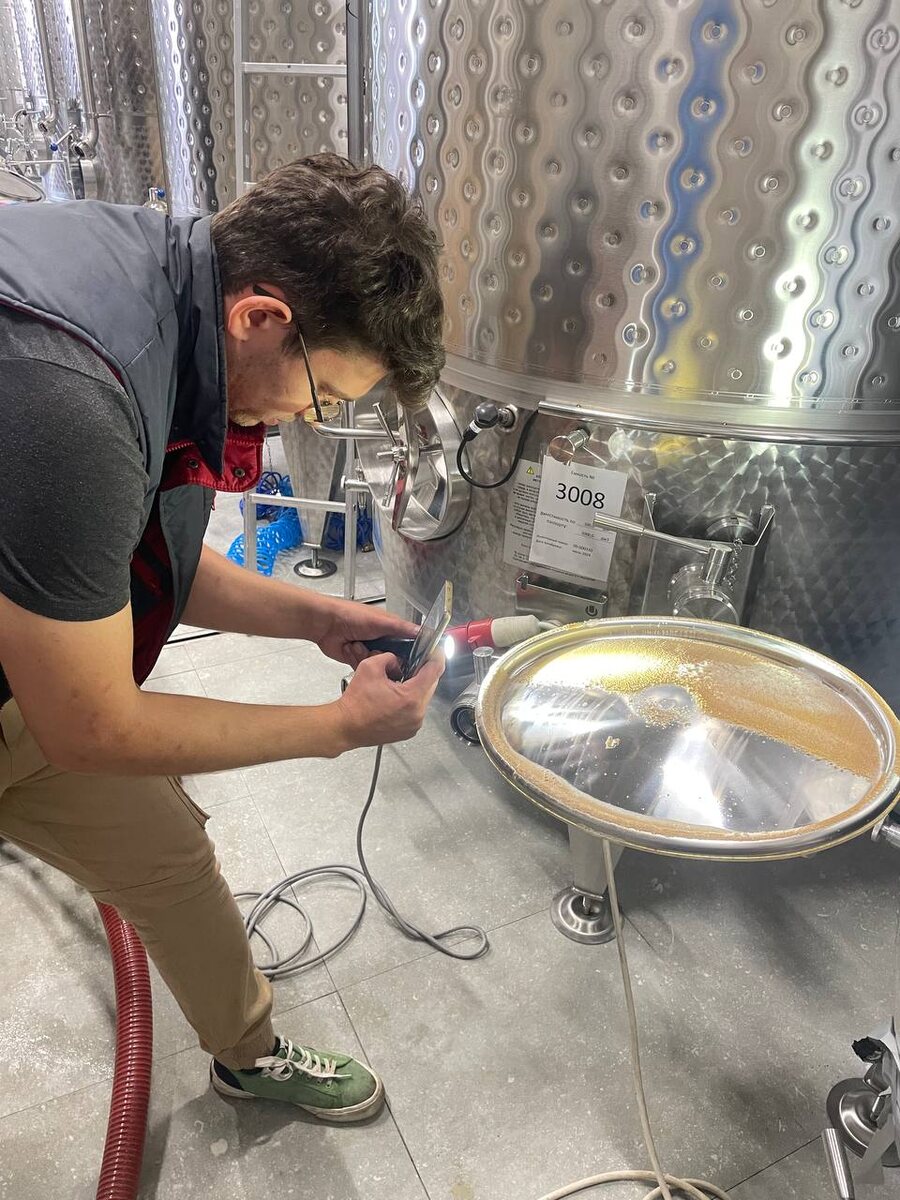 Так выглядит винный камень и Иван Захаров, главный винодел Манкопии, который делает фотографию в свой телеграмм канал Вино и котики