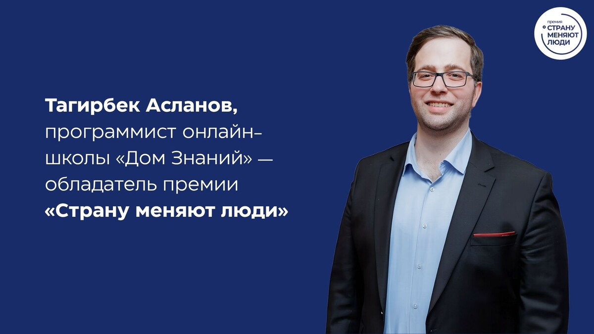 Программист онлайн-школы «Дом Знаний» Тагирбек Асланов удостоен престижной национальной премии «Страну меняют люди»