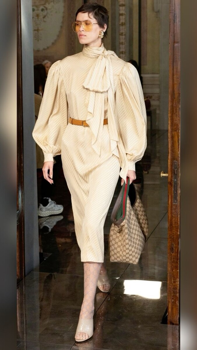 Это статья продолжение двух предыдущих, в которых я писала об актуальных моделях блуз . И такое название статьи совсем не случайно. Оно на прямую связано с одним из самых актуальных моментов в блузах. И да, это бант! Причём его завязывают именно сбоку, вот так: Или вот так: То есть те завязки, шарфик , про которые я писала до этого, можно завязывать в бант. Конечно , его можно сделать и по центру: Но такой вариант встречается гораздо реже: Главное при любом варианте это ещё наличие высокой стойки на блузе: Банты встречаются во многих коллекциях и не заметить их просто невозможно: Размер самого банта может быть и не таким большим. Всё таки надо ещё смотреть на пропорции и размеры. Всё может быть более спокойно и главное, чтобы сбоку бантик был: А ещё, его можно не просто завязать, а закрепить например, зажимом для платка: Очень интересный и красивый вариант. Конечно, можно вместо зажима использовать брошь, тут главное захотеть) Если любите банты, то сейчас самое время носить т