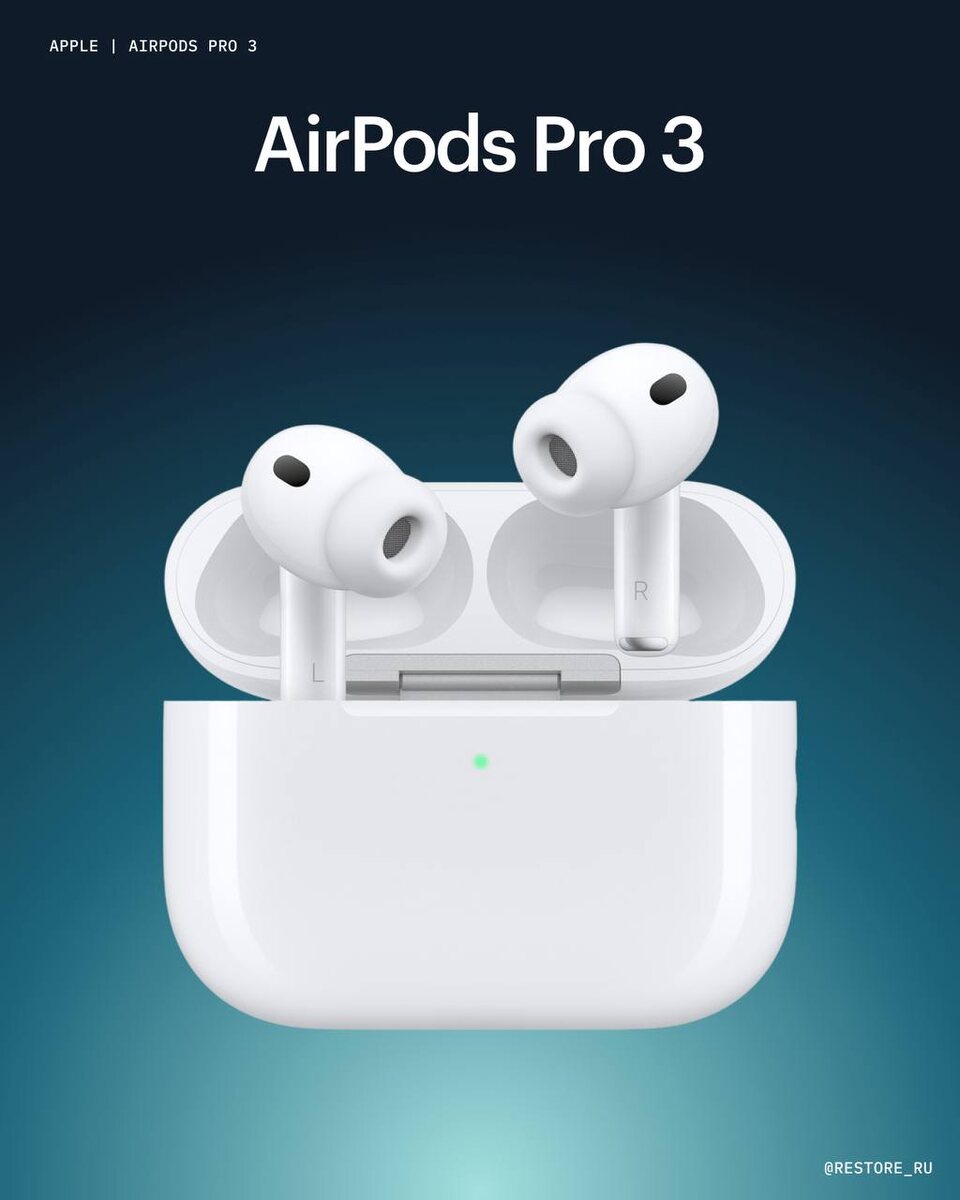 AirPods Pro 3 ждут вас в restore: Шумоподавление стало в 2 раза эффективнее, чем у Pro 2, и в 4 — чем у первых Pro. Наушники измеряют пульс и передают данные в «Здоровье» и Fitness+ в реальном времени. Live Translation помогает на встречах и в поездках, а заряд держится дольше — до 8 часов с шумоподавлением и до 10 в режиме прозрачности. Сейчас их можно купить по специальной промо-цене — успевайте воспользоваться предложением.