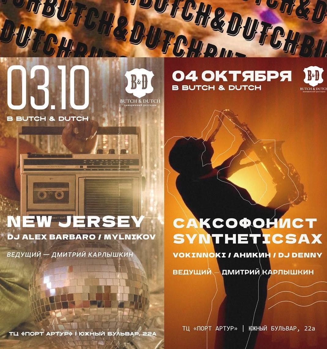 📅 3 октября, пятница 🎸 New Jersey 🎧 DJ Alex Barbaro / Mylnikov 📅 4 октября, суббота 🎷 Саксофонист Syntheticsax 🎤 Vokinnoki / Аникин / DJ Denny ✨ Ведущий вечера — Дмитрий Карлышкин ТЦ «Порт Артур», Южный бульвар, 22а, 3 этаж 😄 Мероприятия Нижний Новгород. Я местный! 📱 Мероприятия Нижний Новгород. Я местный! в MAX