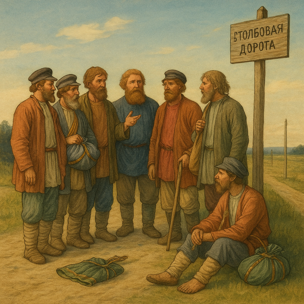 На столбовой дороге сходятся семеро мужиков из соседних деревень. Завязывается спор: «Кому на Руси жить хорошо?» Чтобы выяснить правду, они клянутся идти по деревням и городам, говорить с разными людьми и не возвращаться, пока не найдут ответ. Вступление задаёт тон всей поэме: это будет народное путешествие-расспрос.