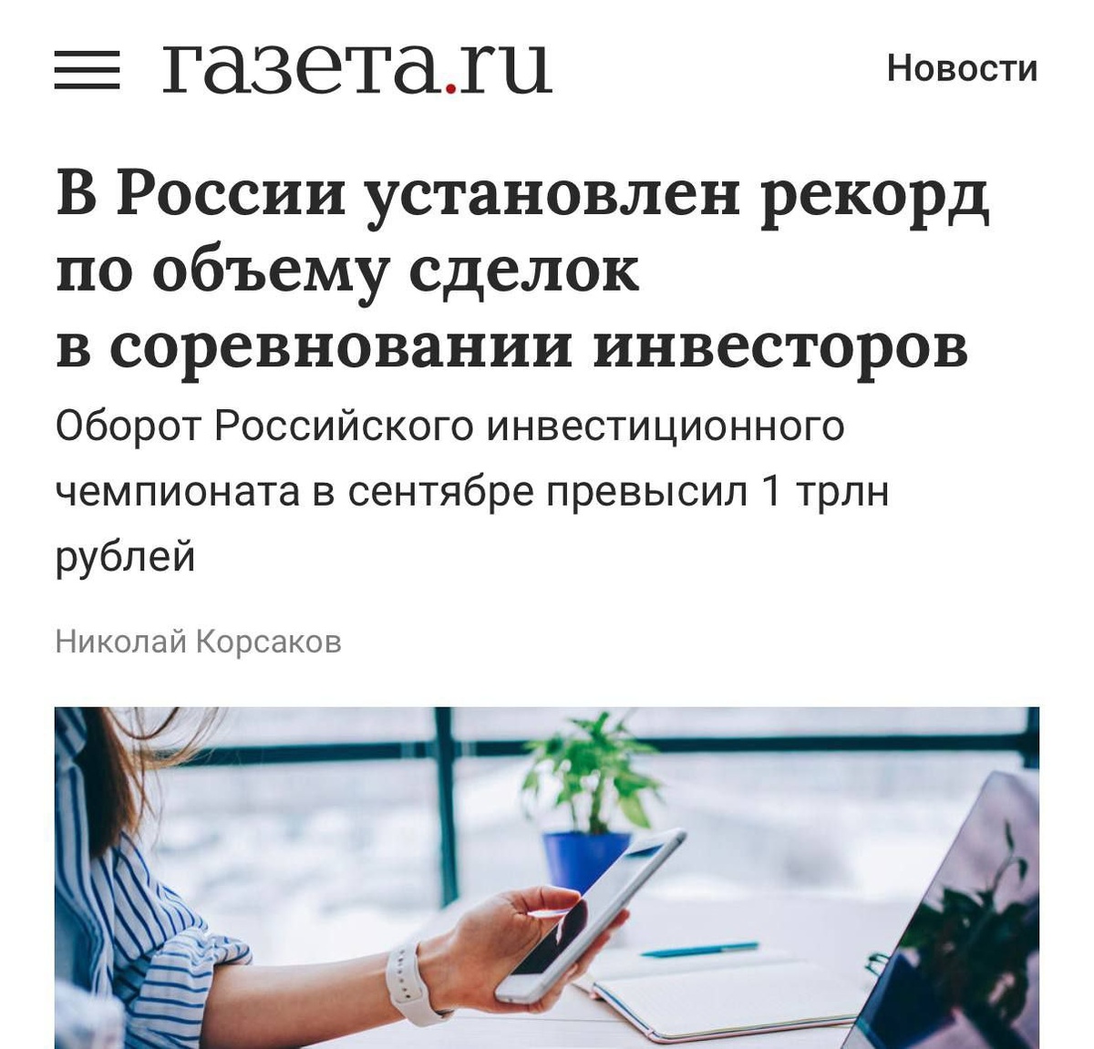 В России новый финансовый рекорд — за один месяц 70 тысяч инвесторов успели совершить сделки на 1 ТРИЛЛИОН рублей Рекорд побили во время инвестиционного чемпионата от Т-Инвестиций. Там участники соревнуются в доходности, чтобы забрать главный приз — 3 миллиона рублей из призового фонда в 160 миллионов. Геймификация финансов выходит на новый уровень.