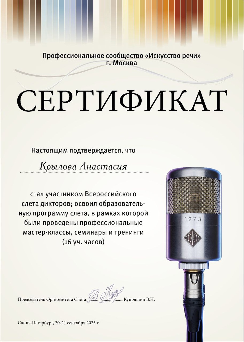 💌Получила сертификат о том, что стала ещё чуть профессиональнее в словесной сфере, нежели раньше. 🎙️🎧