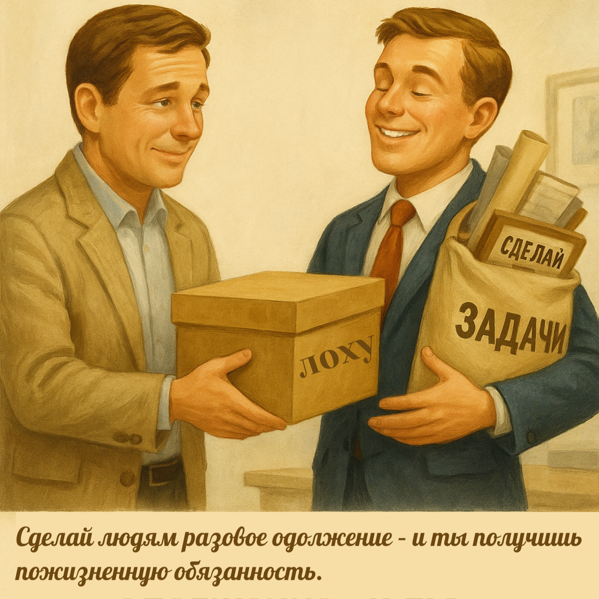 Сегодня мы обсудим один из самых коварных и, к сожалению, часто недооцениваемых законов коммуникации. Этот закон не упоминается в учебниках по PR, но интуитивно понятен каждому из нас. Он звучит как старая народная мудрость: «Сделай людям разовое одолжение – и ты получишь пожизненную обязанность».