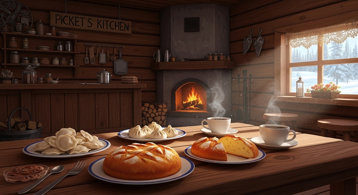 - Кухня Пикета: Пельмени, свежий хлеб и кофе в кафе «У Лехи» – вкус цивилизации.