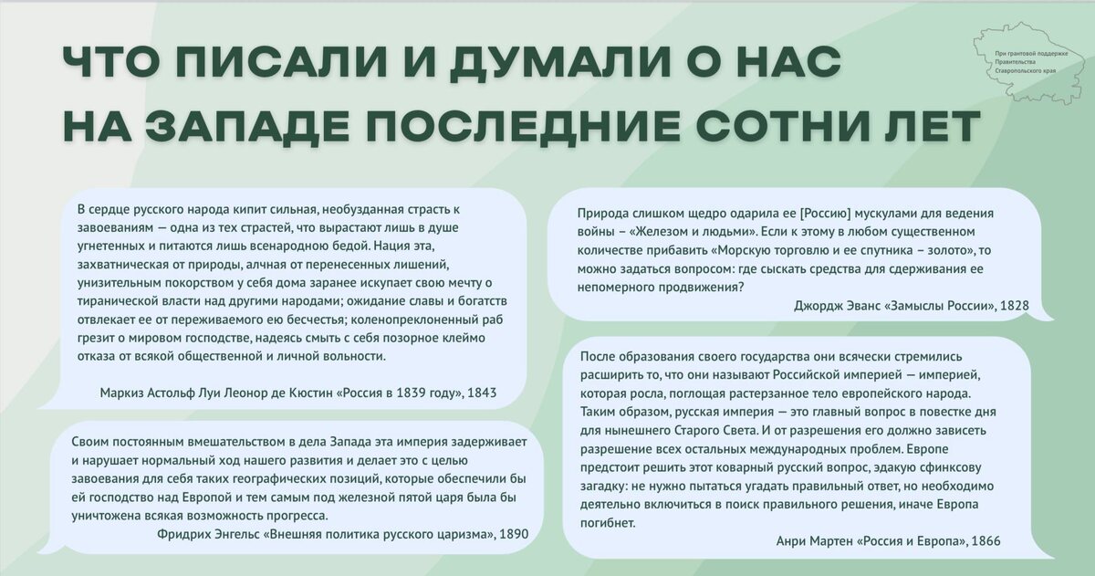 В продолжение того разговора, что вчера начал Президент, делюсь из своей авторской лекции подборкой того, что пишут и думают о нас на Западе последние сотни лет. Здесь и «дроны, и вмешательство в дела западных стран, и российская агрессия».