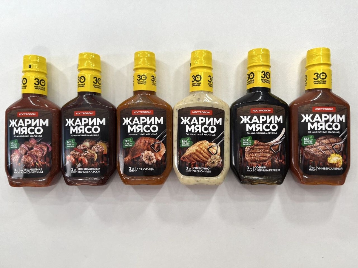 Ассортимент у них широкий. Есть и для птицы, и для рыбы. Многие перепробовала, но остановилась на двух, на мой взгляд, наиболее удачных: классический и кавказский. Один томатный с характерным вкусом, другой более кисленький, сливового цвета. Вкус дают разный. Бутылочка рассчитана на 3 кг мяса. Но я добавляю их не только в мясо, но и в рыбу, и в птицу. И, как правило, они у мени идут в состав более сложного маринада. Но можно использовать и как самостоятельный маринад, особенно, если некогда заморачиваться или просто "не чувствуете" на подсознании экспериментов с такими вещами. (У меня пока ещё так с тестом дела обстоят, не открылась пока нужная чакра)) Что ещё нужно понимать про эти маринады? Это время)) дело в том, что полчаса — это минимальное время маринада при комнатной температуре , и желательно без доступа воздуха, например, в пакете, как с любым маринадом. Маринад уже имеет консистенцию жидкой патоки, что значительно упрощает процесс маринования, обволакивая кусочки и не стека