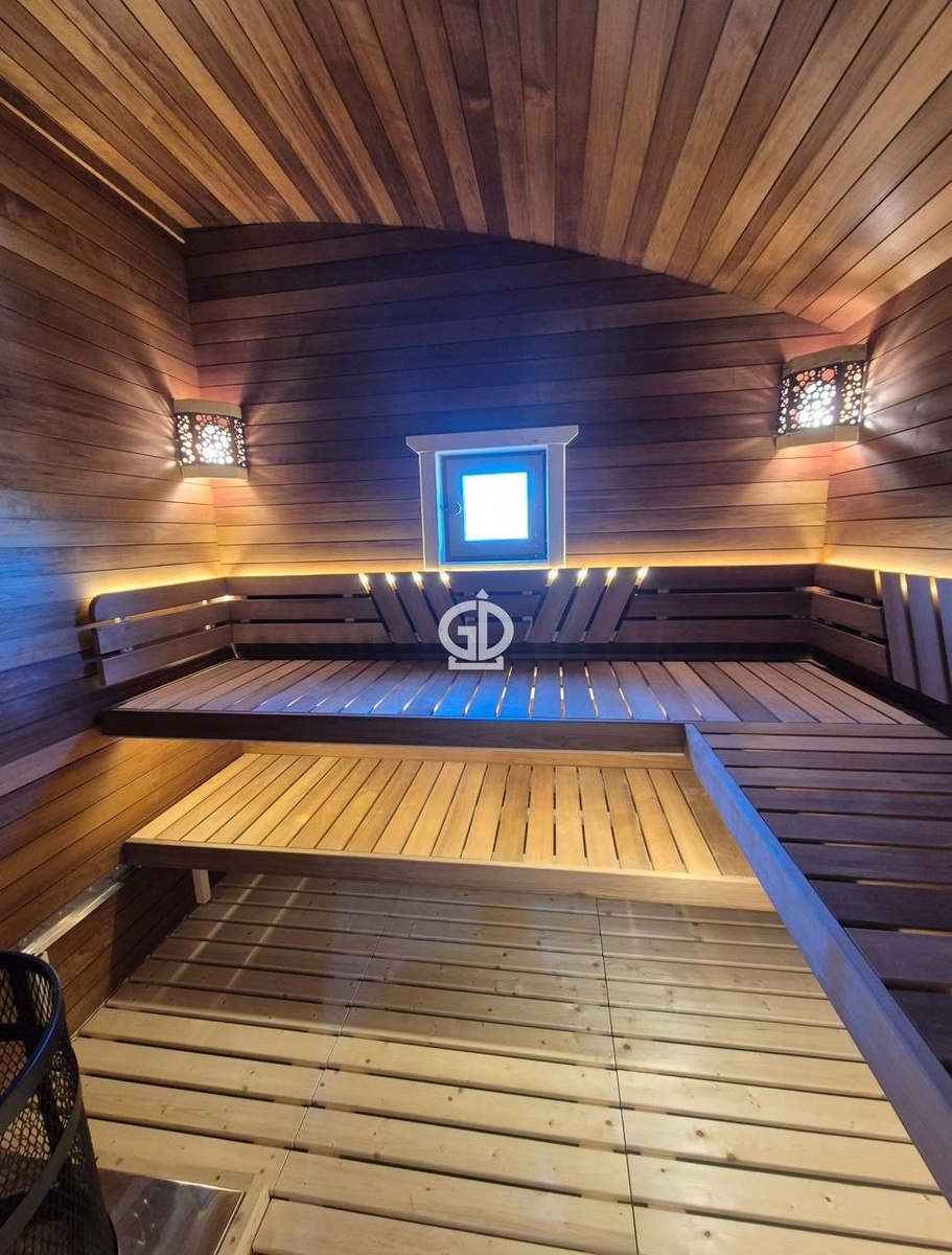 Отделка парной осиновой термовагонкой. Красотища невероятная. Да, дороже, но оно того определённо стоит.