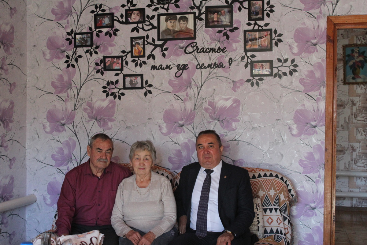 Супругов Сайфулиных Мунира Мансуровича и Асию Байрамгуловну из Ермолаево поздравил председатель СПК «Ватан» Гайнетдин Мухаметов В доме Мунира Мансуровича и Асии Байрамовны Сайфулиных из Айсуака тепло и уютно. Сюда мы приехали с председателем СПК «Ватан» Гайнетдином Мухаметовым поздравить ветеранов труда с Днем пожилых людей. Хотя пожилыми супругов и не назовешь, бодрые, активные, они управляются и с большим огородом, и с живностью на подворье. Разговор у нас сразу завязался непринужденный. - Каждый год в этот день Гайнетдин Газизович приезжает к нам с подарками. Да нам ведь не столько нужны подарки, сколько внимание. Спасибо ему за это, - говорит Мунир Мансурович. Можно сказать, что колбасный цех в СПК «Ватан» 25 лет назад начинался с этого человека. - До «Ватана» я работал в райпо в коптильном цеху, так что опыт был. Через некоторое время предложил Гайнетдину Газизовичу делать не только вяленую колбасу, но и конские ребра. А уж когда спрос на продукцию пошел, то ассортимент и вовсе ра