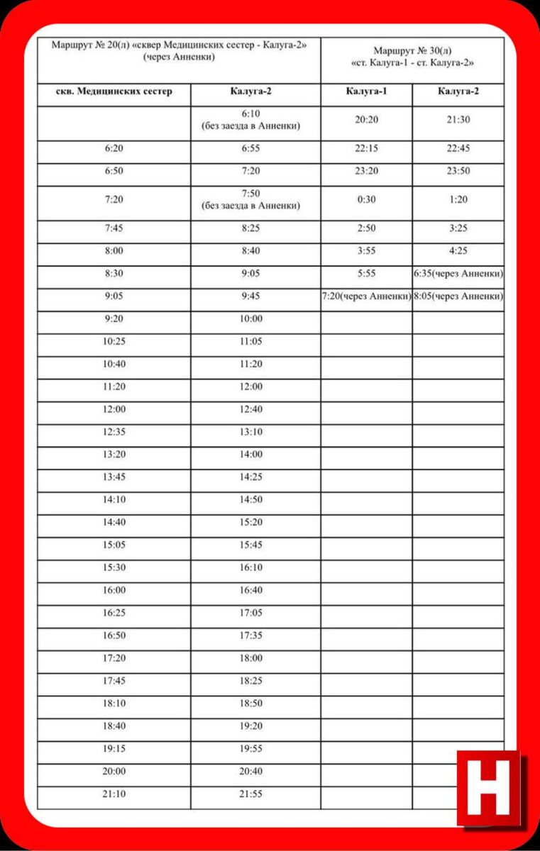 ⚡️⚡️⚡️⚡️С 4 октября меняется расписание движения общественного транспорта в Калуге По многочисленным просьбам жителей корректируется расписание, сообщили в Горхозяйстве: ➡️№ 20(л) «сквер Медицинских сестёр — Калуга-2» ➡️№ 30(л) «ст. Калуга-1 — ст. Калуга-2» Изменения — на картинке. 📺 Подписывайся на наш канал в Максе
