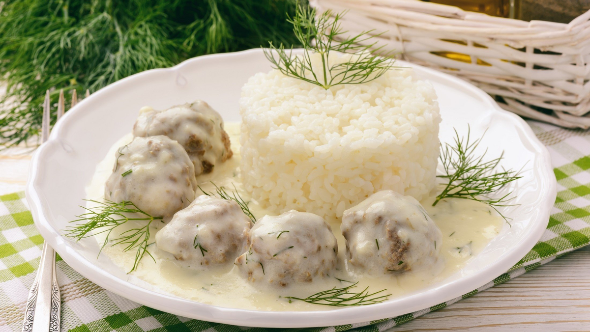 Рецепт рыбных тефтелей в сливочном соусе с рисом
