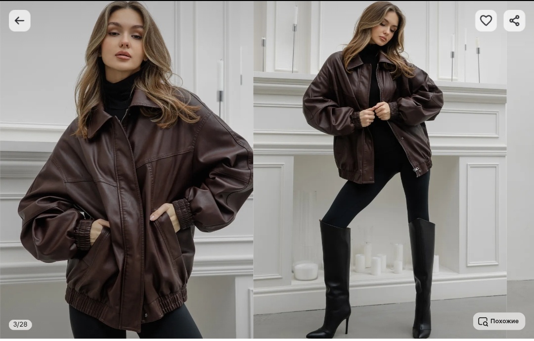 Бомбер легко комбинируется с джинсами, юбками и ботильонами, создавая непринуждённый городской стиль. Цветовая гамма шоколадного и светло-коричневого оттенков идеально вписывается в осенние образы, добавляя тепла и уютной атмосферы.