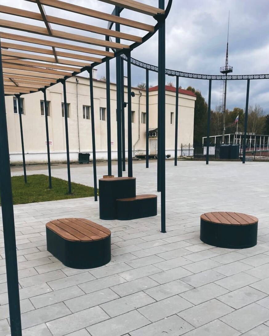 Торговая площадь готовится к зиме. Окрашивание защищает конструкции от погодных воздействий.