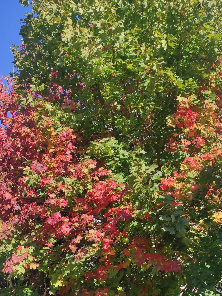 В багрянец осень нарядила в садах деревья и кусты. В лесах и парках обронила листву с деревьев на росу. Пожухлых трав посеребрила стволы и листья по утру.
