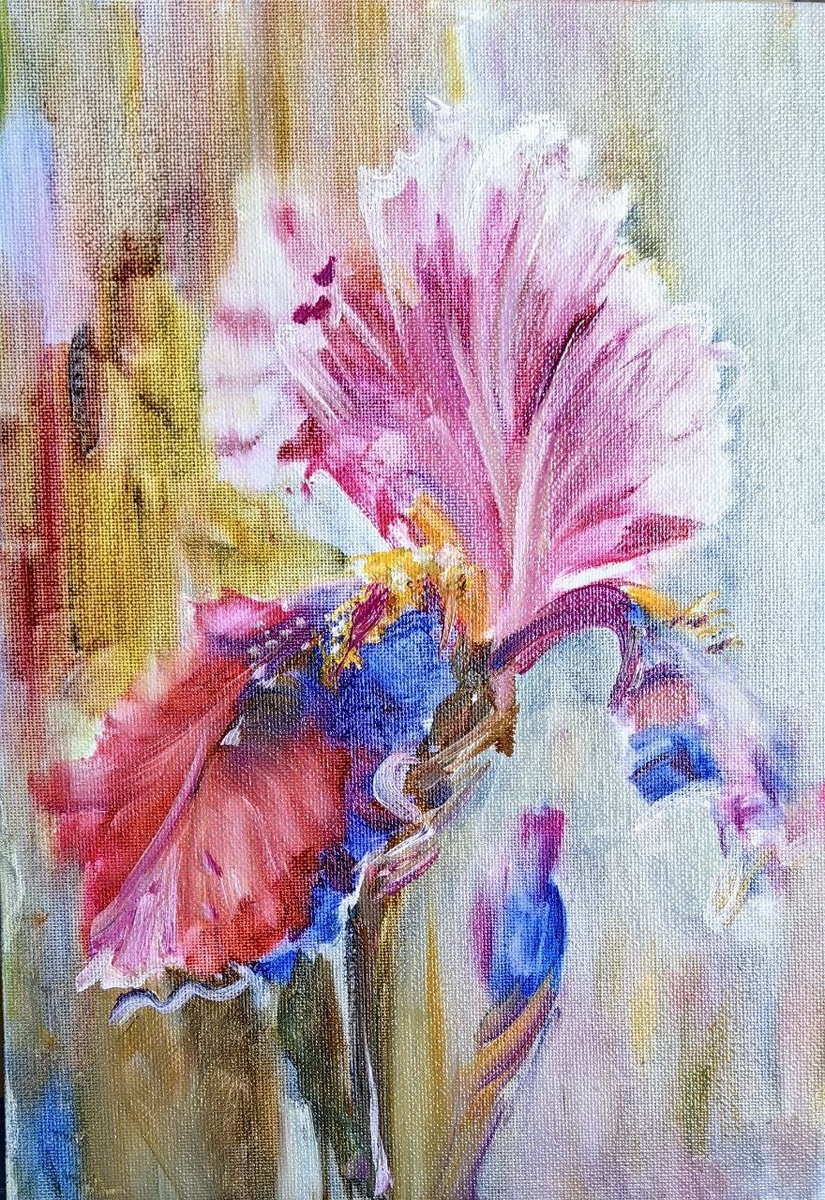 Ирис- символ модерна. Написала маслом ирис с референса с заданными ограничениями по краскам: только индийская жёлтая, ультрамарин и розовый краплак и только в конце белила титановые, они непрозрачные и в процессе добавлять нельзя. Я раньше не использовала индийскую жёлтую, а она очень универсальная. Краплак использовала красный , а он холоднее , больше в коричневость, в отличии от розового краплака. Вообще, масло - прекрасный материал, можно всё исправить им, но масло требует знаний по краскам, правил смешивания, сочетания, использования " тройника", не все любят запах скипидара в нём. Можно писать на уайт-спирите без запаха, но у меня текли нижние слои картины на нём и получалось смешение и грязные цвета в работе. Все наработки в пастели, акварели с маслом не действуют . Я сделала перерыв летом на три месяца с маслом, перешла на более лёгкие материалы и теперь всё по новому как- будто начинаю. #oilcanvas #oilpainting #живописьмаслом #paintingprocess #oilart #пейзажмаслом
