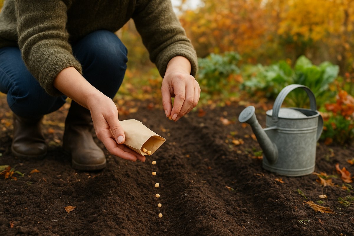 Вот и закончилась яркая осенняя суета. Сад, кажется, погрузился в сон. Но самый находчивый дачник знает: сейчас — золотое время, чтобы сделать рывок к будущему урожаю. Пока вы греетесь дома с чашкой чая, ваши семена уже будут работать в почве. Подзимний посев — это не авантюра, а мудрый агроприем. Природа сама проведет стратификацию (закалку холодом) для семян, они рано тронутся в рост и дадут сверхранний урожай. Весной вам останется только пожинать плоды своей осенней прозорливости. Итак, вооружаемся терпением и семенами. Погода нам в помощь: сеем, когда температура стабильно держится около 0...+2 °C, а почва слегка подмерзает. Главный кандидат на осеннюю посадку. · Когда: За 2-3 недели до устойчивых морозов (обычно конец сентября — середина октября). Он должен укорениться, но не прорасти. · Как: Разбираем головку на зубчики, отбираем самые крупные и здоровые. Сажаем на солнечное, не замокающее место. Глубина — два диаметра зубчика (примерно 5-7 см). Схема посадки — 10х15 см.