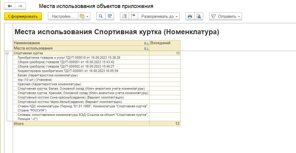 🔍 Места использования номенклатуры: полная история документов Что это? Отчет показывает все документы, где участвовала выбранная номенклатура — независимо от их статуса и проведения. Когда полезно? 1️⃣ Нужен полный список документов · В отличие от «Ведомости по товарам на складах» показывает и непроведенные документы 2️⃣ Быстрый поиск самого раннего документа · Идеально для анализа истории учета товара Как сформировать? 1️⃣ НСИ и администрирование - Номенклатура - выберите товар 2️⃣ «Еще» - «Отчеты» - «Места использования» 3️⃣ Готово! Видите полную хронологию документов с этой номенклатурой Преимущества: ✔ Экономит время на анализе ✔ Показывает все статусы документов ✔ Работает с момента начала учета товара